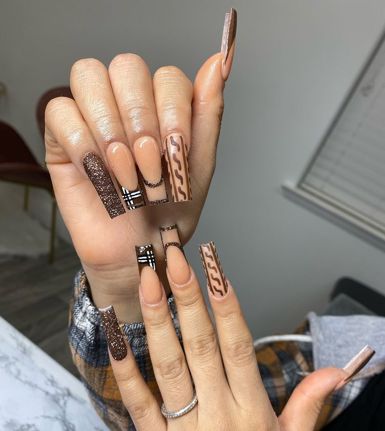 Brown-Freestyle-Double-French-Nails