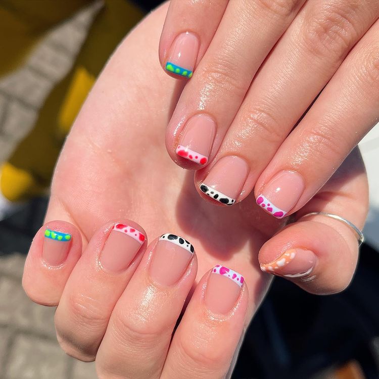 Colorful-Cow-Print-French-Nails