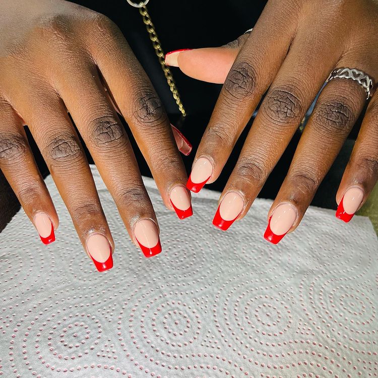 Glossy-Red-French-Coffin-Nails