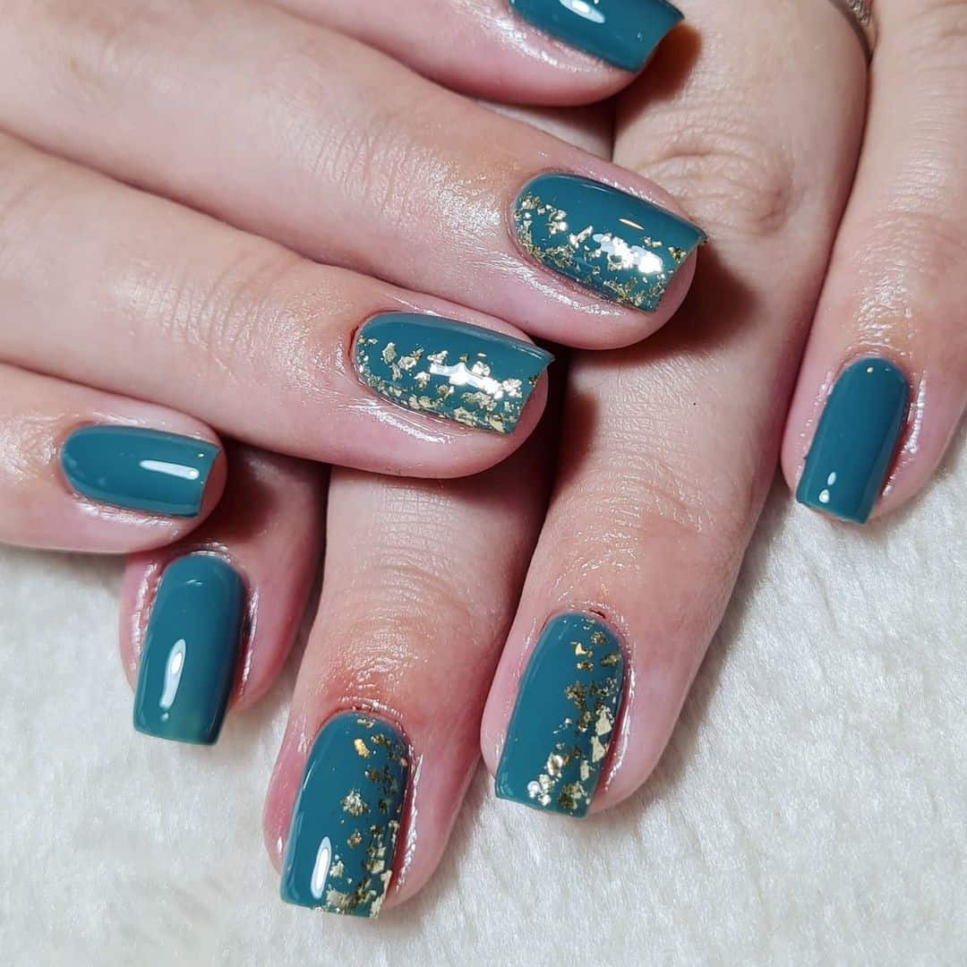 Short-Green-Winter-Nails-With-Gold