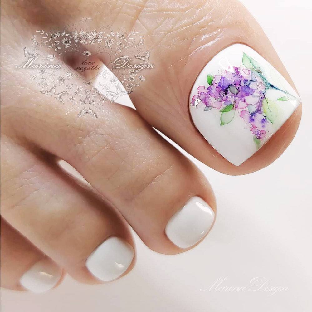 toe-nail-designs-beach-white-watercolor-flower
