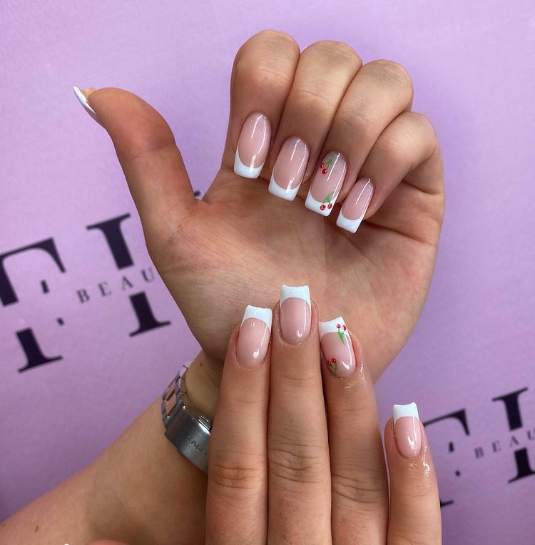 White-French-Nails-With-Cherries